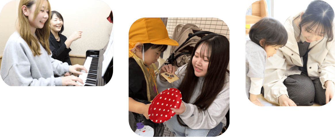 また、保育園・幼稚園などの姉妹園と連携し、現場力を育てることも大切にしています。教室での学びだけでなく、実習サポートも万全!安心して学べる環境が整っています。